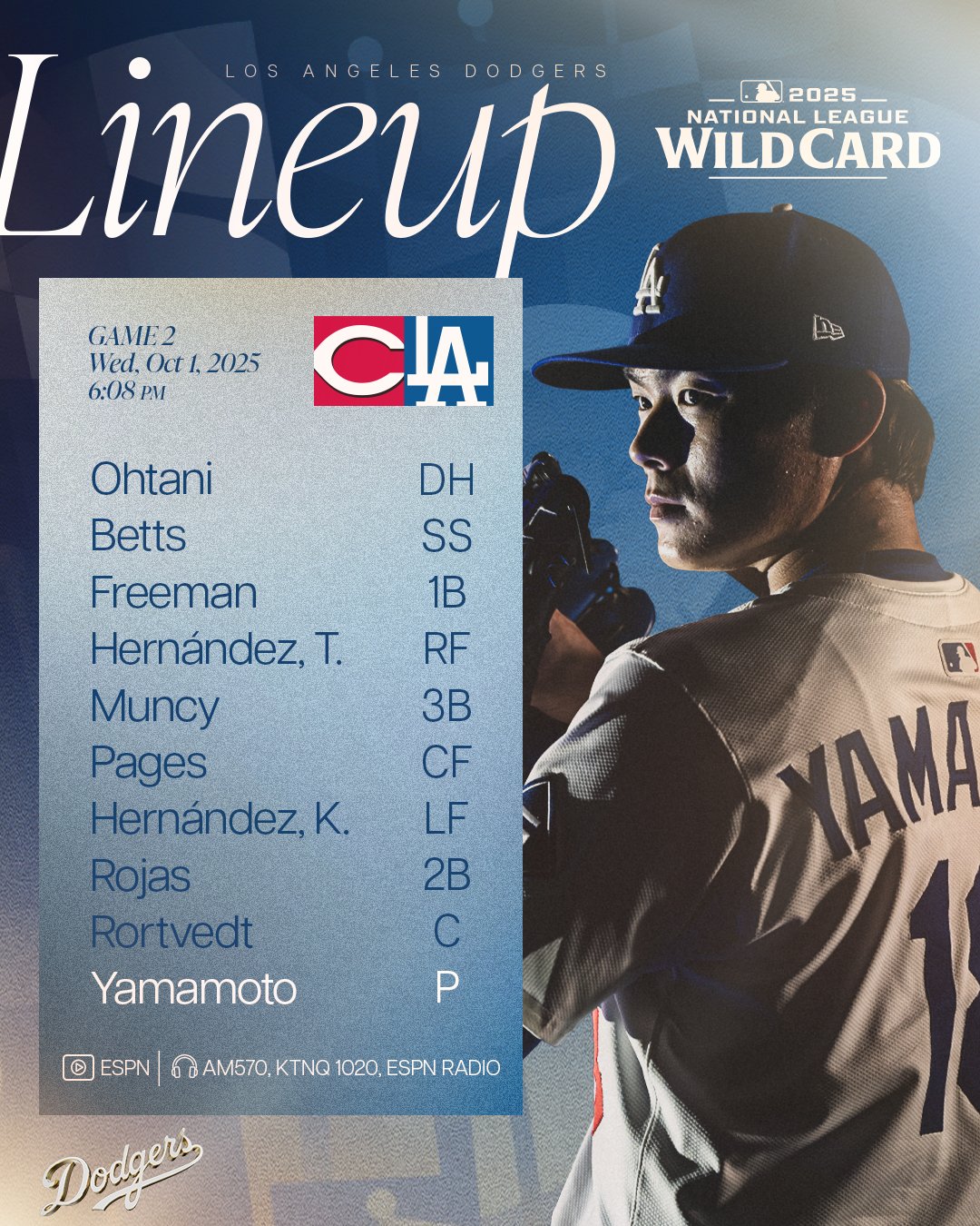今日のドジャース・スタメン【10月2日】